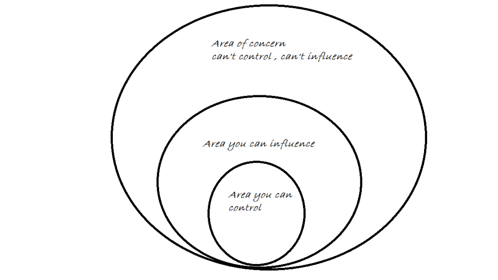 A great way to get going would be to start using the sphere and write your own details in each part of it. If you’re still confused whether something is in your control or not, ask yourself : Can I change it? Can I do it differently? If the answer is yes, then you control or influence the task, hence the outcome depends on you.